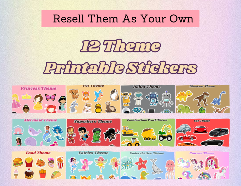 12 Theme Printable Stickers that you can resell [READY TO PRINT]